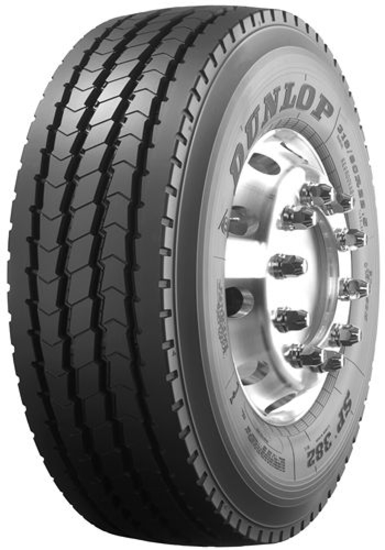 Nová generácia pneumatík Dunlop SP 382 na riadenú nápravu je špeciálne navrhnutá tak, aby spĺňala požiadavky dnešnej "zmiešanej dopravy". Sú odolné voči poškodeniu a zároveň poskytujú vynikajúci kilometrový výkon. Ich ďalšou hlavnou výhodou je silná priľnavosť na mokrých nespevnených cestách. Použitie zmesi vyvinutej pomocou najnovšej technológie a nový dizajn kostry zabezpečujú, že pneumatika Dunlop SP 382 je veľmi odolná a má skutočne dobrú protektorovateľnosť. K dispozícii sú dve verzie: so štyrmi a piatimi rebrami pre palcové, resp. milimetrové veľkosti.