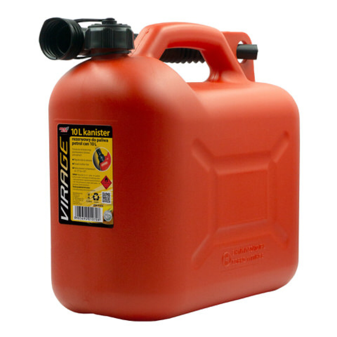 Bezpečný spôsob skladovania a prepravy paliva. Pohodlný nalievací lievik. Odolný voči pádu z výšky 1,5 m.Možnosť použitia pri teplotách od -25°C do +50°C. Kapacita 10 litrov.