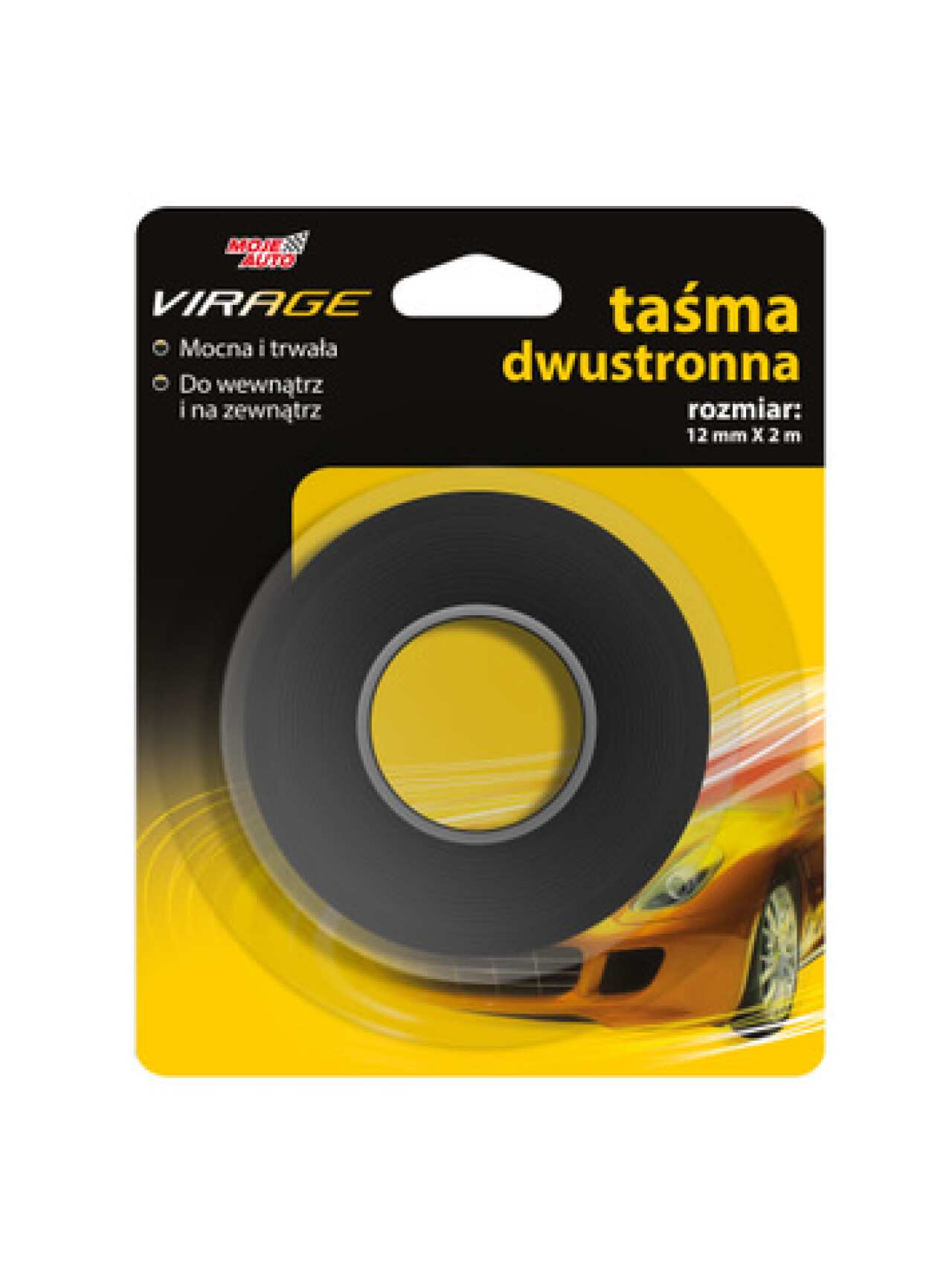 Pevná a odolná obojstranná páska. Pre vnútorné aj vonkajšie použitie. Veľkosť: 12mm x 2m.