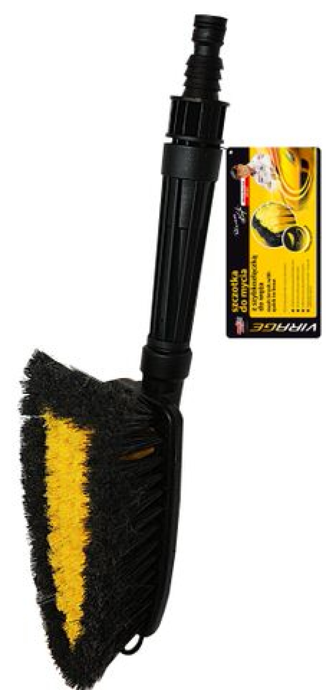 Dvojito brúsené štetiny. Jedinečný dizajn štetín s dvoma dĺžkami. Jemne čistí karosériu auta bez poškriabania. Postrekovač na konci rukoväte možno použiť na polievanie záhrady.